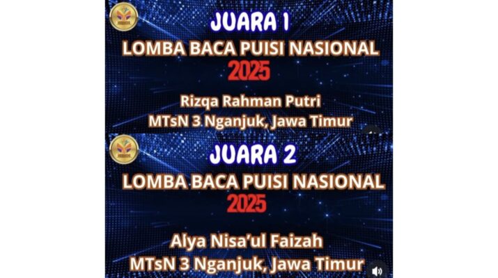 MTsN 3 Nganjuk – Prestasi membanggakan kembali diraih oleh MTsN 3 Nganjuk, Jawa Timur. Dua siswi berbakat berhasil menorehkan prestasi gemilang pada ajang Lomba